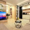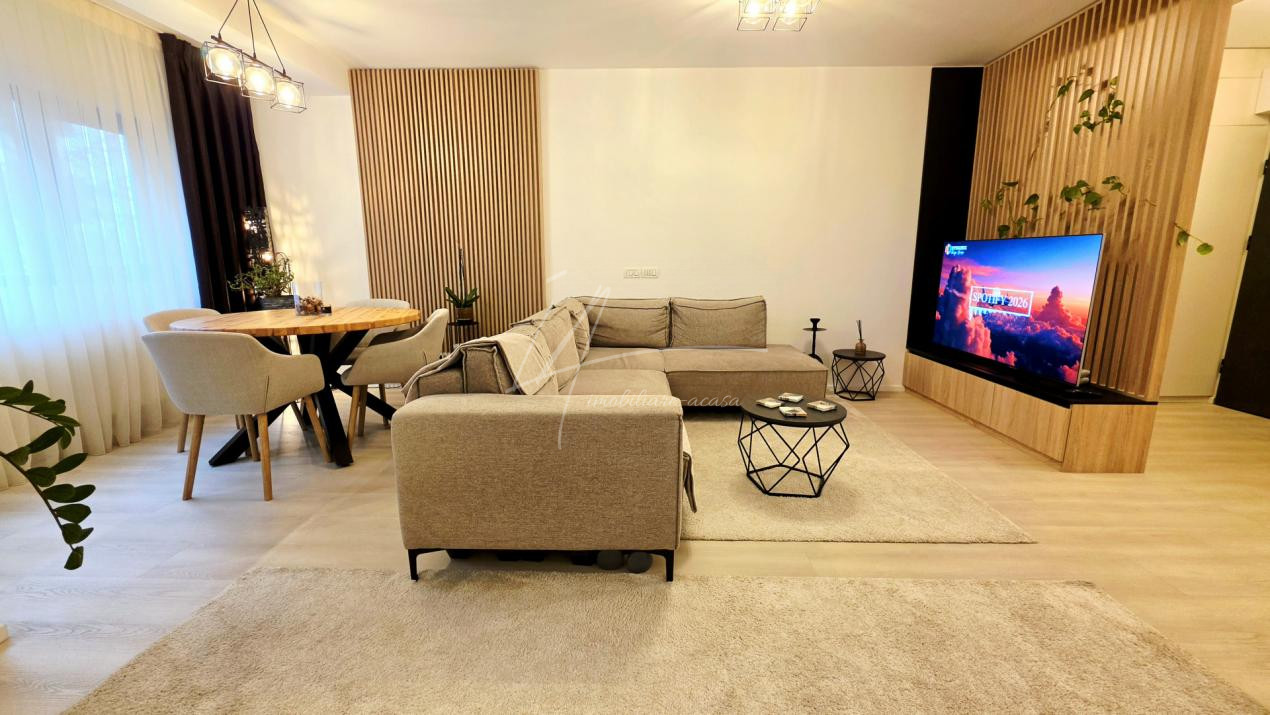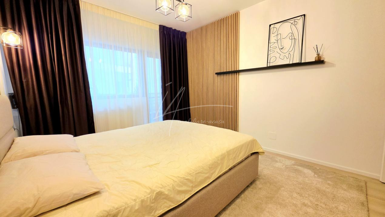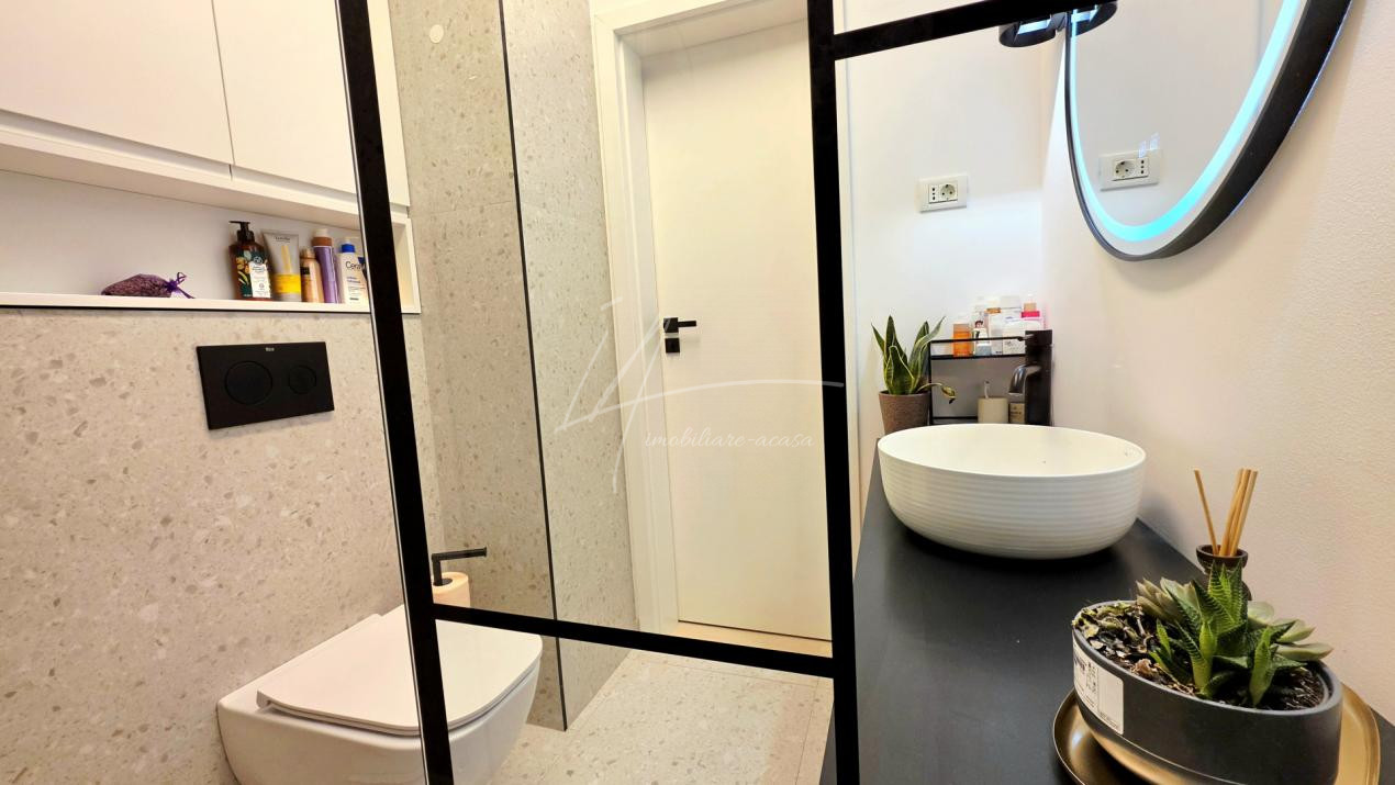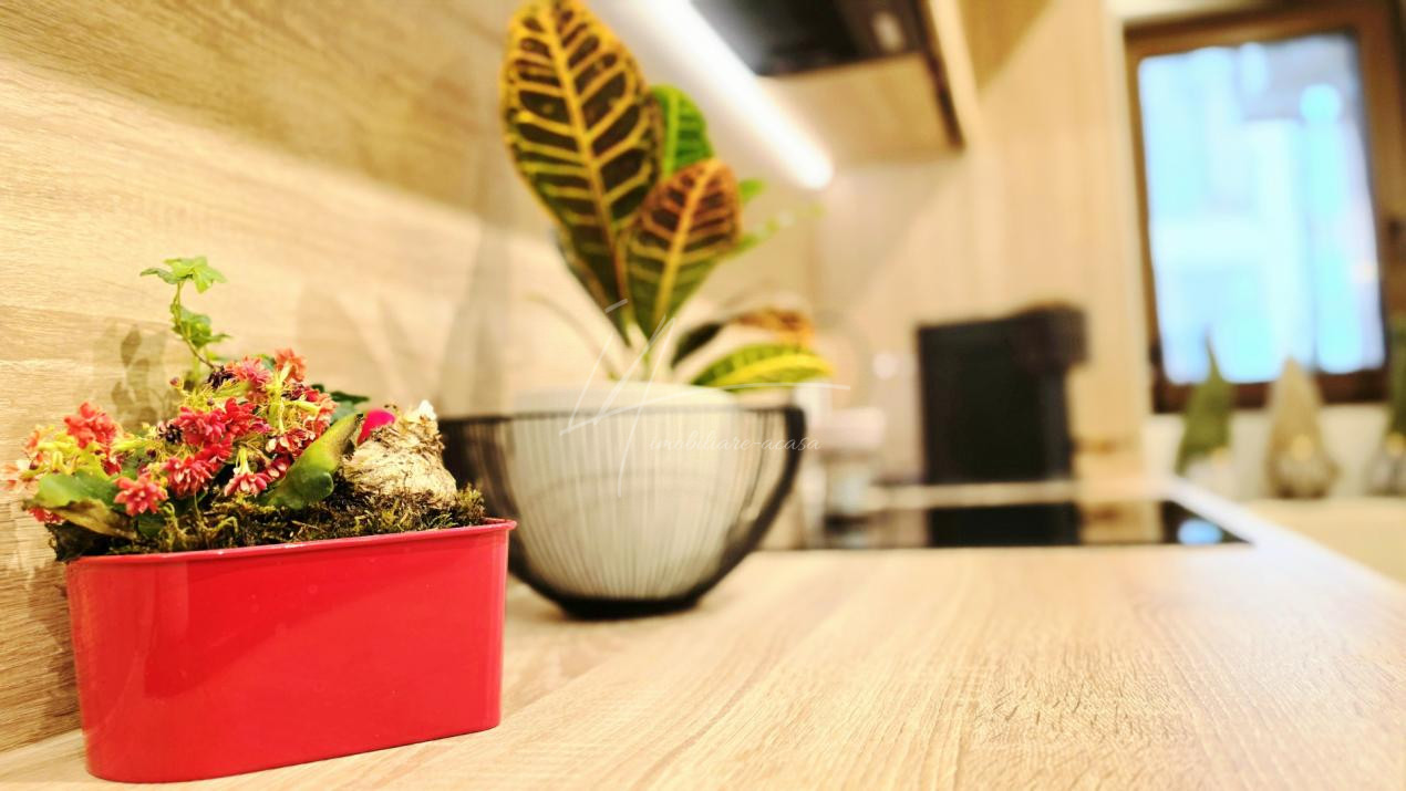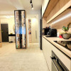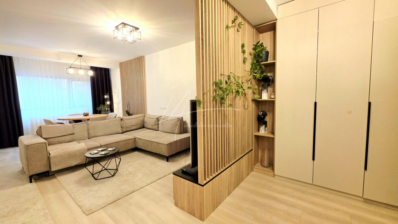 Bucataria deschisa cu livingul este mobilata si utilata cu tot ce este necesar. Livingul este minimalist si ultramodern si, odata cu canapeaua extensibila aflata in fata comodei TV, vine la "pachet" si cu o zona de "dressing" suficient de incapatoare pentru cerinta de spatiu pentru haine.