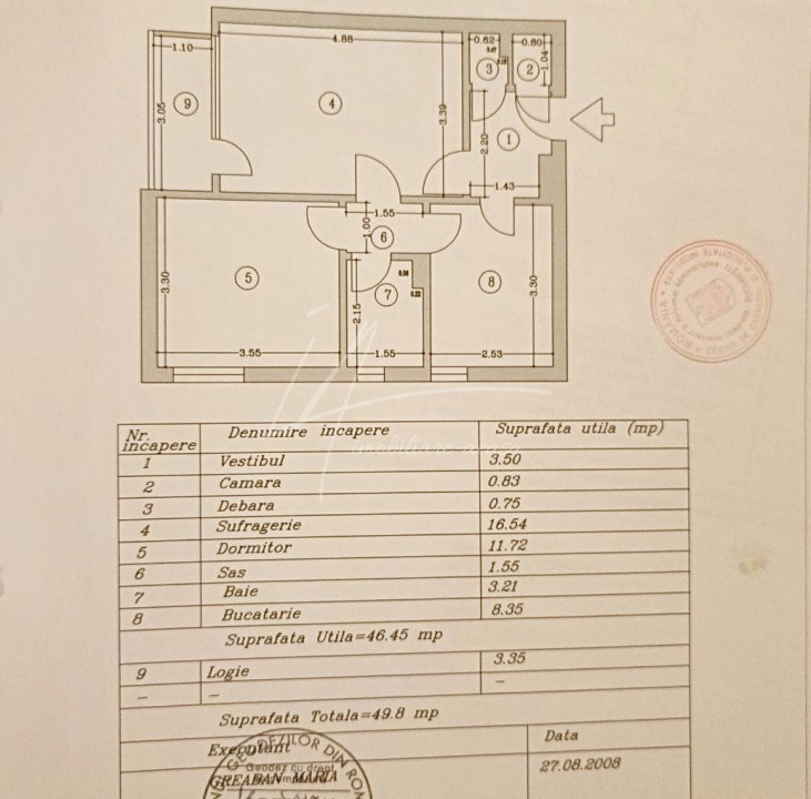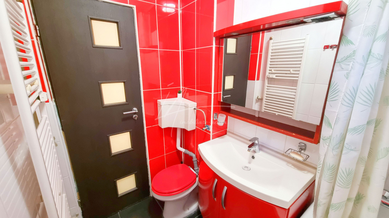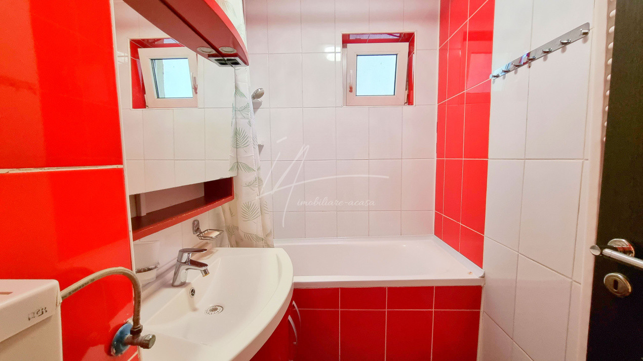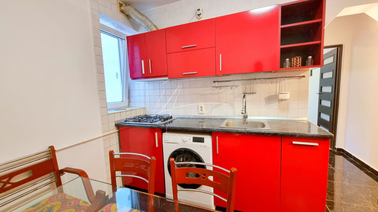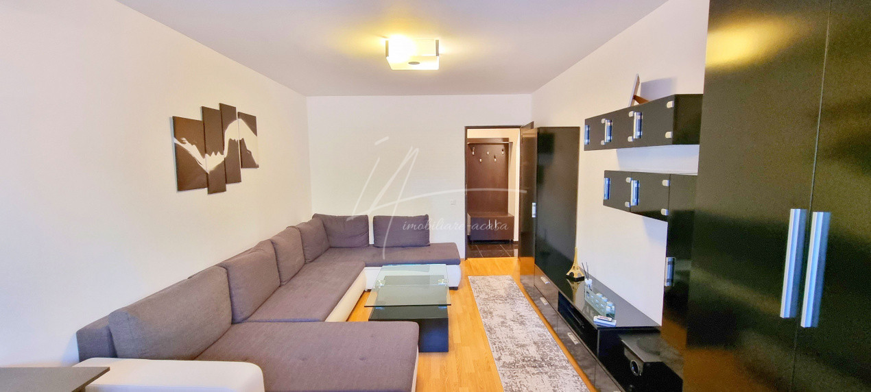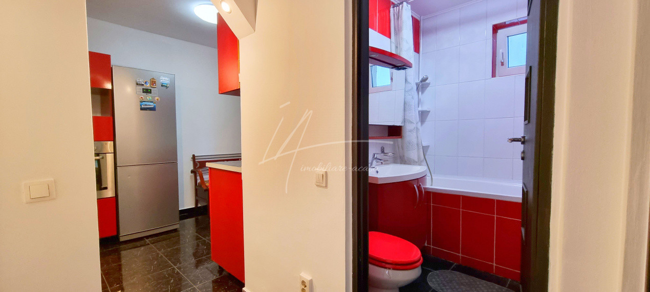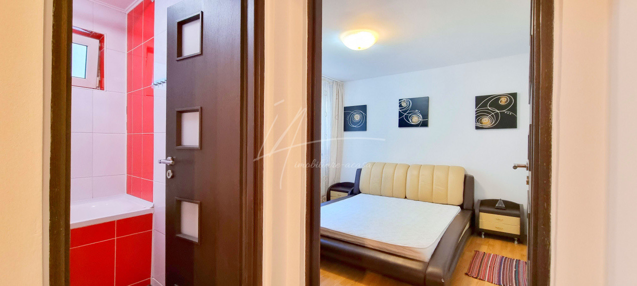 Din holul principal al apartamentului se face accesul catre camera de zi, care este complet mobilata si utilata, incapatoare si luminoasa, cu o suprafata de 16,54 mp ce face legatura mai departe cu logia apartamentului, ce a fost inchisa pentru un plus de spatiu util adus apartamentului. Tot din holul principal se face legatura cu bucataria, care este complet mobilata si utilata cu plita pe gaz, cuptor electric, frigider, hota si o masina de spalat rufe. In continuarea apartamentului se afla dormitorul primitor, complet mobilat si baia, ce are geam si aerisire naturala.