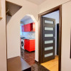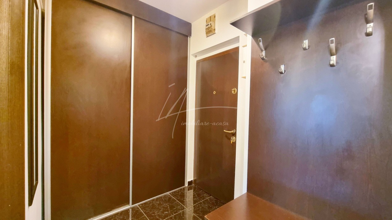 Acest apartament complet mobilat si utilat disponibil pentru inchiriere, este situat la etajul 4 si are ferestrele orientate catre nord si catre vest, spre curtea interioara din spatele blocului si spre aleile cu spatii verzi dintre blocuri, fiind ferit de zgomotul stradal. Este o locuinta placuta, ce ofera intimitate si confort datorita amenajarii armonioase si placute pe care o are, inclusiv a cele doua spatii de depozitare generoase aflate in holul principal de la intrarea in apartament.