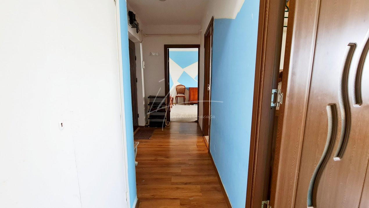 Amplasat peste drum de Supermarket Lidl, la etajul 8 al blocului construit in anul 1979, apartamentul decomandat, in suprafata utila totala de 55,91 mp este orientat catre Nord-Vest cu vedere panoramica deosebita spre Soseaua Vestului catre munte. Accesul din bloc este rapid si facil catre toate mijloacele de transport, inclusiv catre punctele de interes ale zonei.