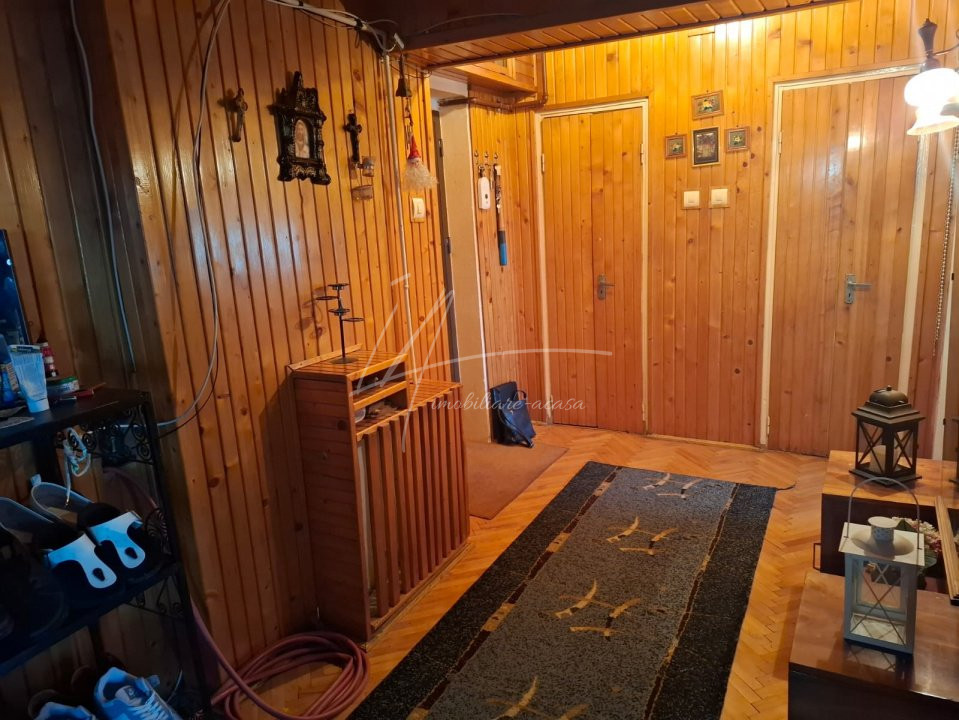 De vanzare apartament cu 3 camere, bucatarie, baie, hol, camara alimente, debara, sas, balcon, garaj, in suprafata de 84 mp construiti, 74 mp utili.