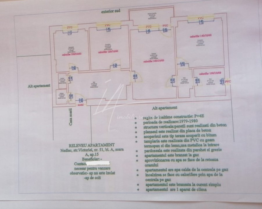 Apartament 3 camere în Nădlac judetul Arad, situat pe strada Victoriei colt cu strada Nicolae Balcescu etaj4/4.