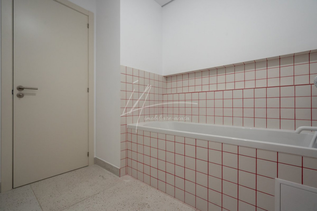 2 băi complet amenajate, cu finisaje de top: ceramică de calitate superioară (faianță + gresie) din Spania și Italia
