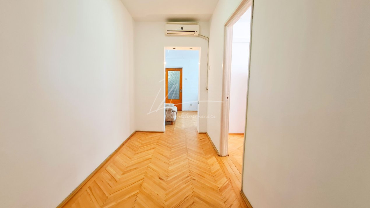 Holul larg din continuarea apartamentului in care poate fi montat un dulap tip dressing in care sa iti incapa toate hainele, face accesul in cele doua dormitoare si baia cu aerisire naturala.