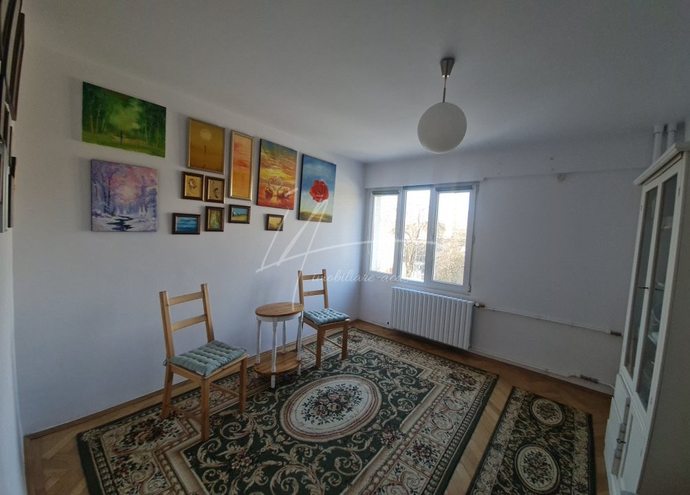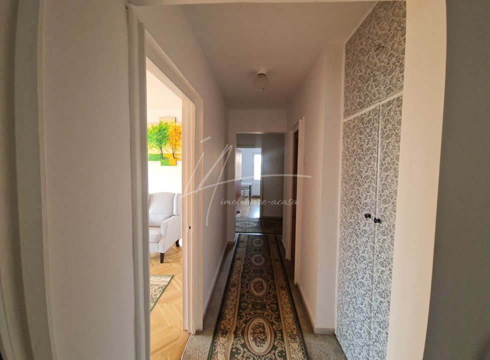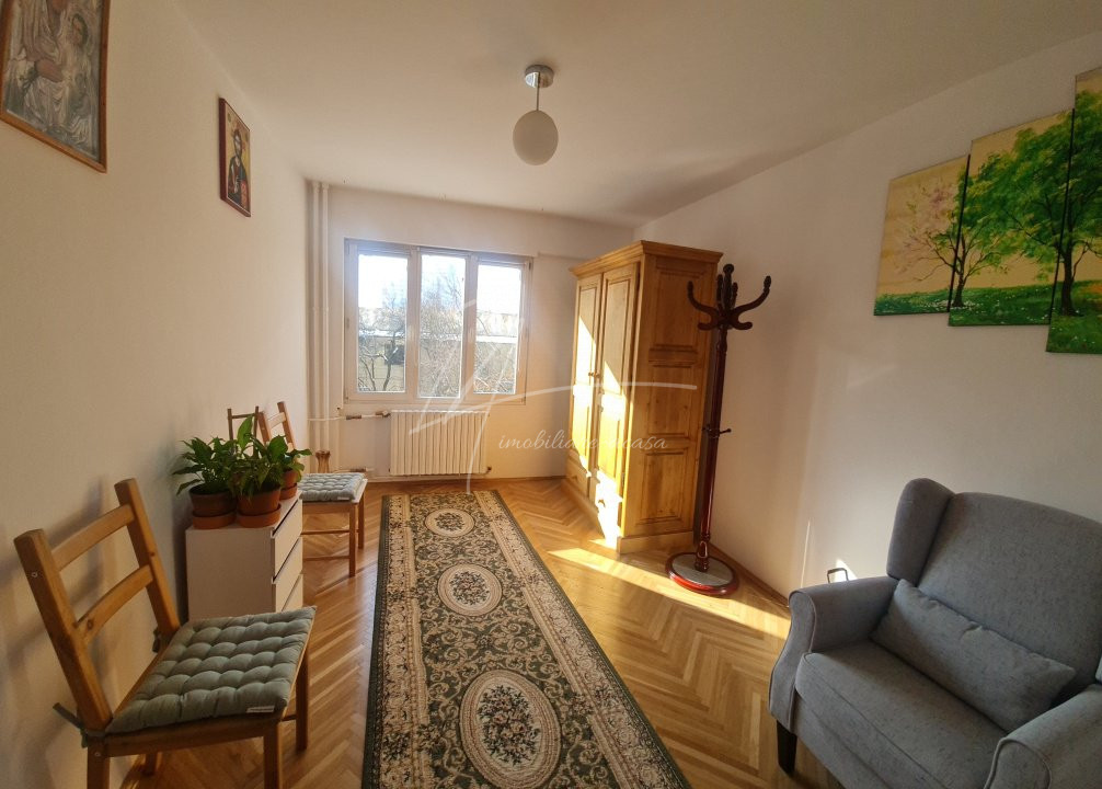 Suprafata utila a apartamentului este de 81 mp, este decomandat, contine: vestibul, culoar, 4 camere, bucatarie, 2 bai, camara, 1 balcon. Un apartament foarte bine compartimentat, luminos si primitor, avand orientare spre Sud-Est si Sud-West. Usa metalica noua, parchet reconditionat – superb, geamuri termopan, aer conditionat, posibilitate centrala termica proprie.