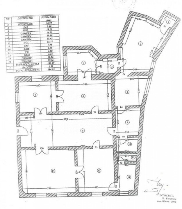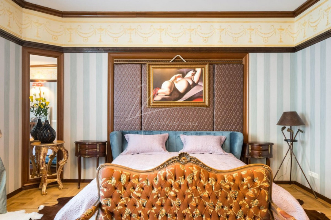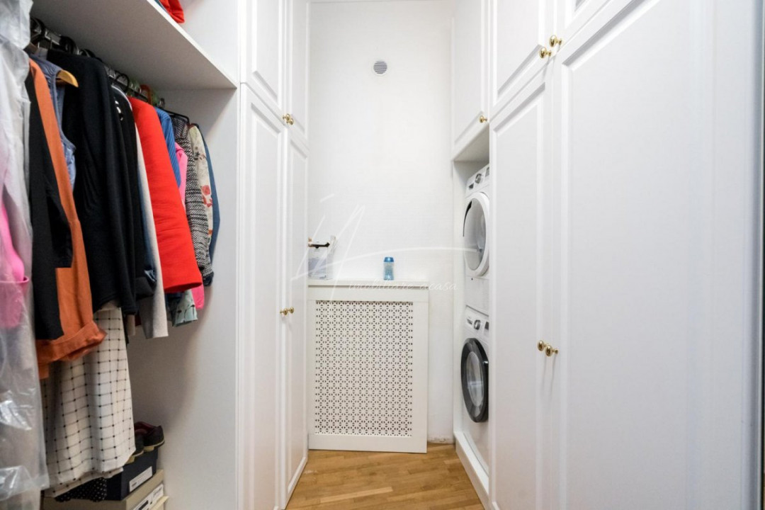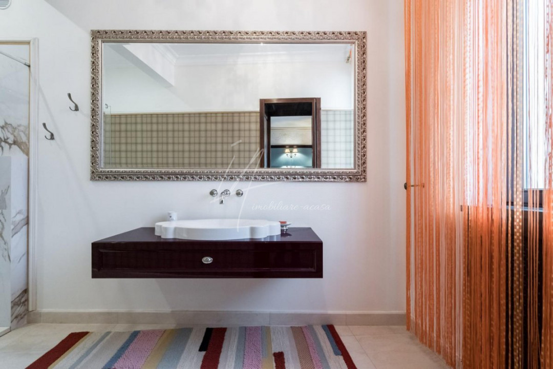 Apartamentul este total mobilat si utilat, are suprafata de 190 mp, 6 camere, 2 camere tip dressing, bucataria cu camara si centrala termica, 3 bai cu fereastra, tavanului este inalt de 3 m, iar balconul transformat intr-o camera-seif.