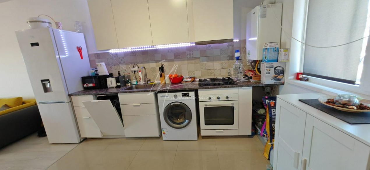 In hol este dulap pentru haine si raft mare pentru pantofi. Bucătăria este mobilată si utilată cu aragaz, hotă, frigider, mașină de spalat vase.