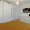 Un dormitor are pat matrimonial, dulap, noptiere, televizor, al doilea dormitor are pat, birou.