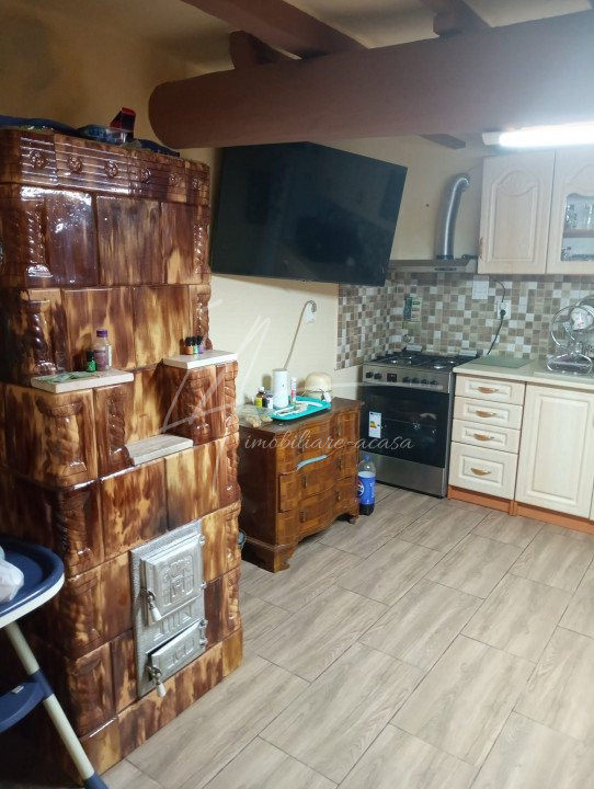 Casa are 3 camere, trei holuri, baie, bucatarie, doua camari, bucatarie de vara, terasa, cotete, anexe, colna pentru lemne, hambar, magazie, curti 182 mp si gradina 390 mp.