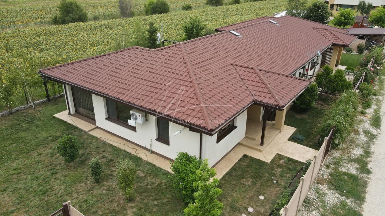 Acoperișul este izolat termic cu polistiren și îmbrăcat cu tablă tip Lindab.