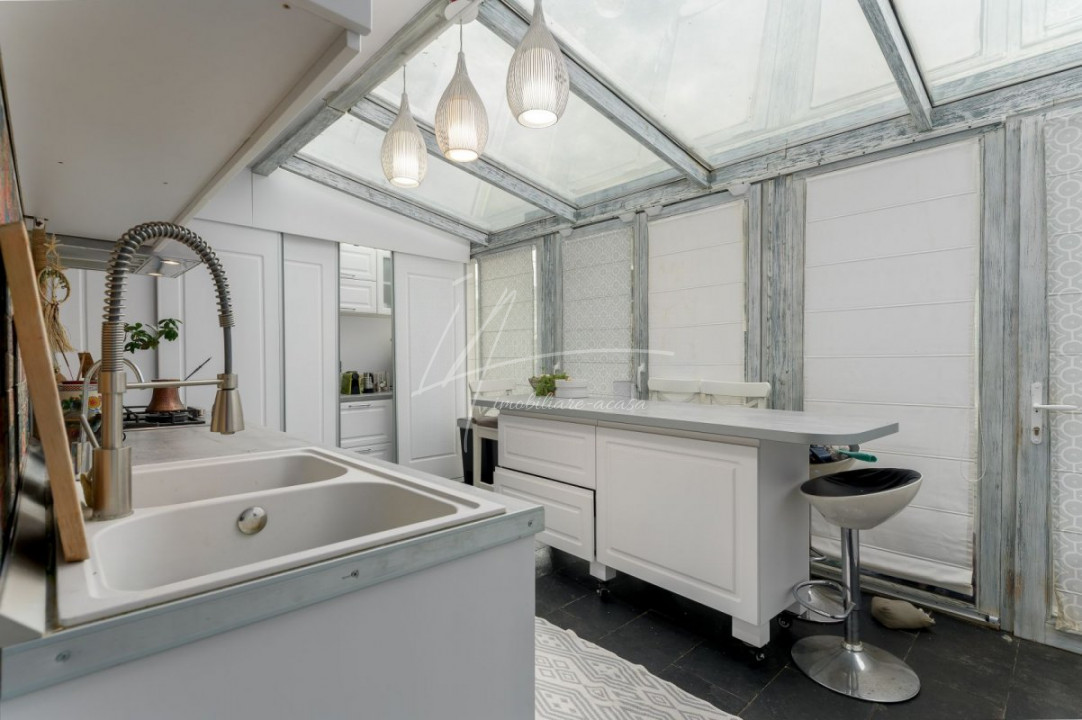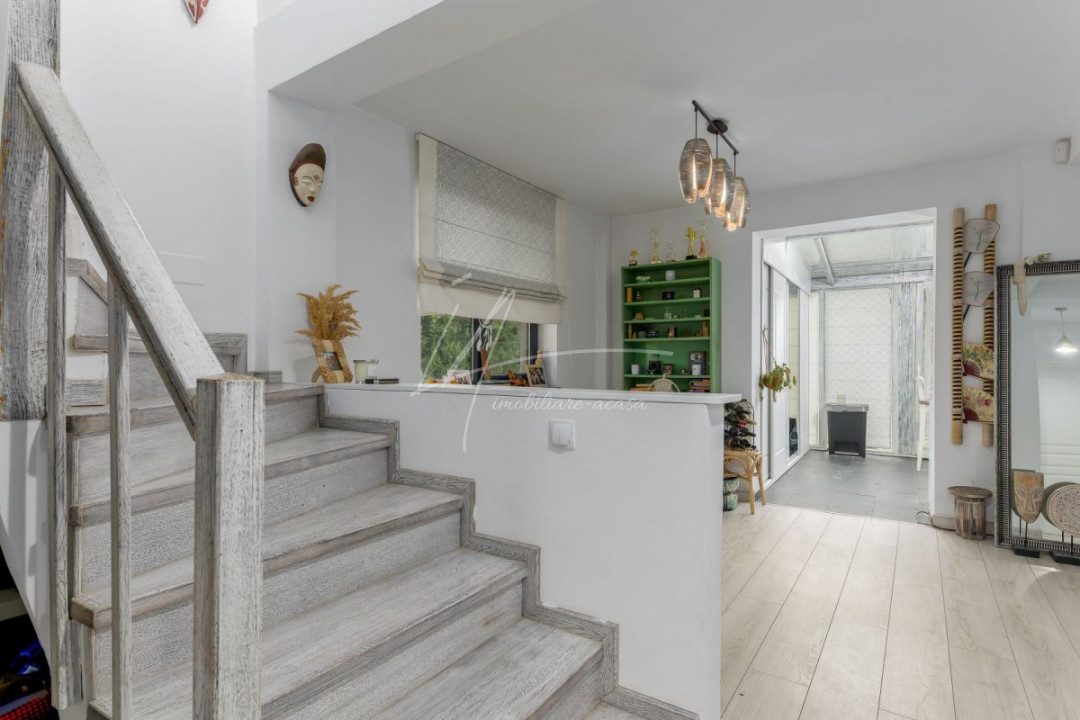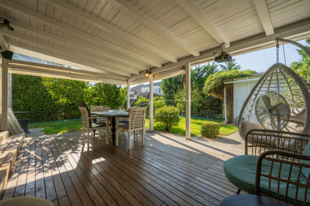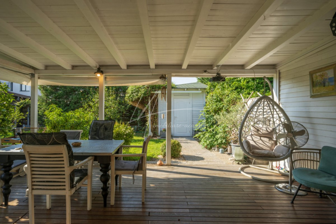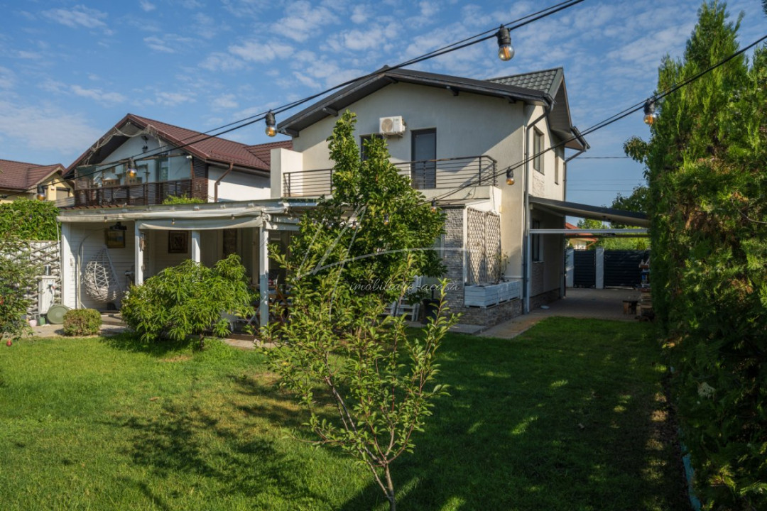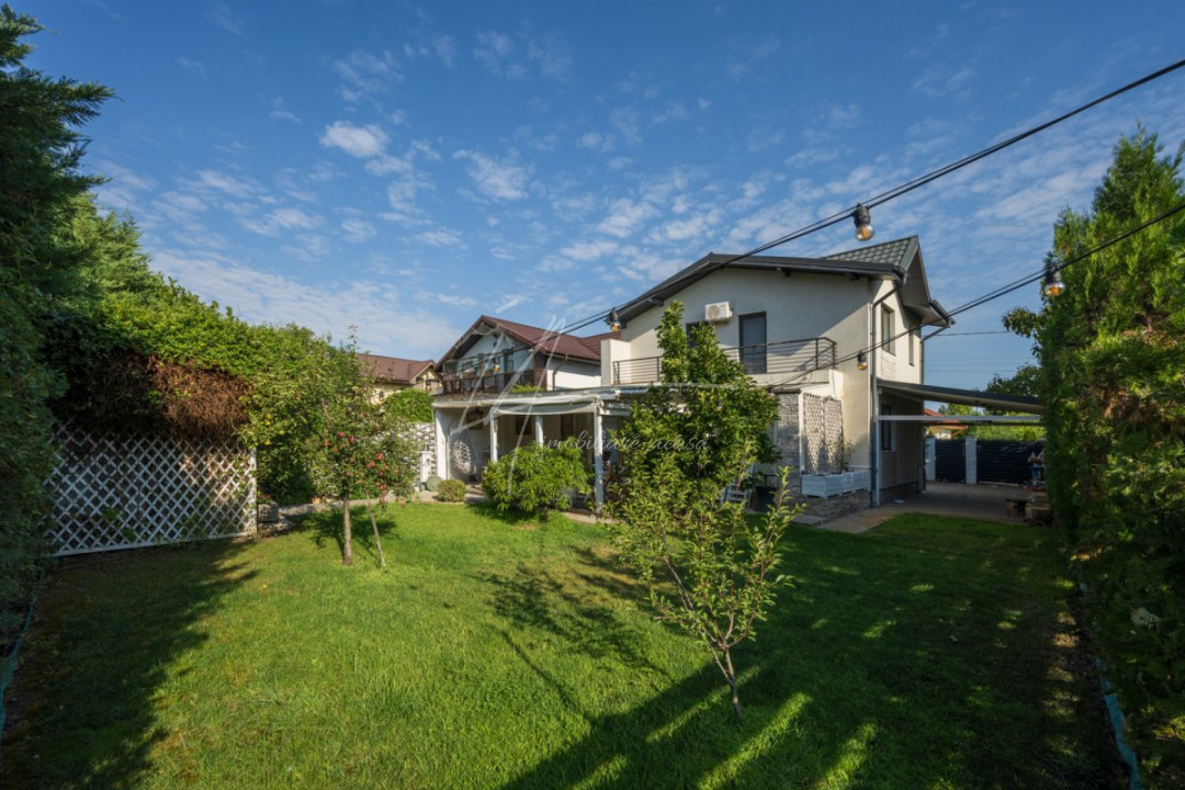 CORBEANCA - PIERSICULUI, CASA 140 MP TOTAL, LOT 360 MP, LA CHEIE! Localizata pe o strada cu trafic redus, adiacenta Corbeanca Park, cu acces imediat in soseaua Unirii. Casa de dimensiuni optime, cu personalitate, ideala pentru o un cuplu sau o familie cu 1 copil. Interior cochet si primitor, compartimentare, dormitor matrimonial extins, 2 bai, mobilata si utilata, la cheie. Gradina matura, vegetatie placuta, magazie pentru unelte, pergola auto, terasa acoperita, tamplarie cu lemn antichizat, zona de gratar.