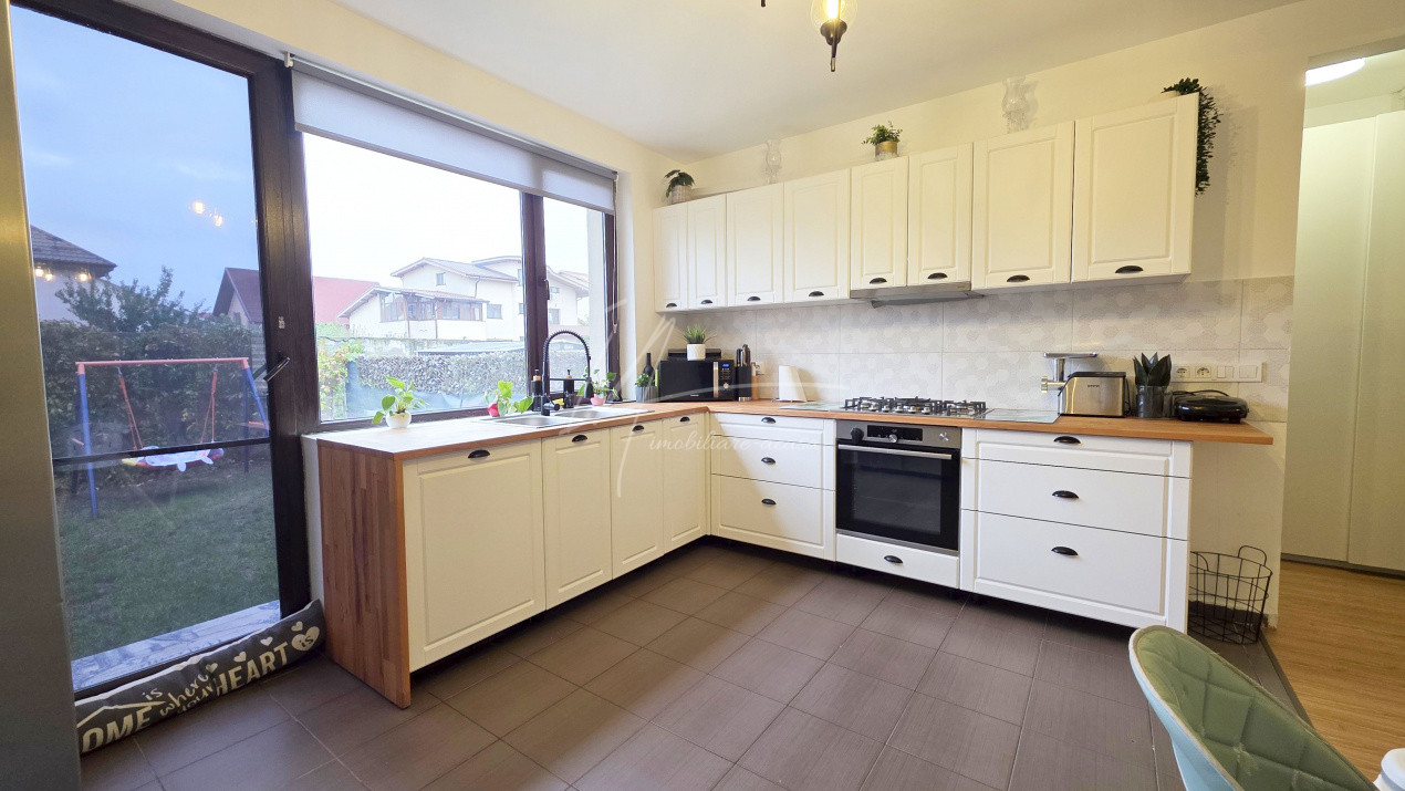 Cu o arhitectura practica și un design interior contemporan, aceasta locuinta te întampina la parter cu un living generos, inundat de lumina naturala, perfect pentru serile în familie sau pentru clipele tihnite de relaxare. Bucataria deschisa, complet mobilata si utilata cu electrocasnice moderne, iti ofera libertatea de a gati cu placere, fara compromisuri. Tot aici, un grup sanitar elegant completeaza perfect spatiul.