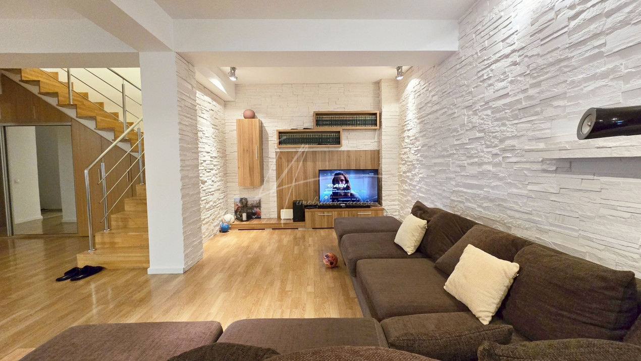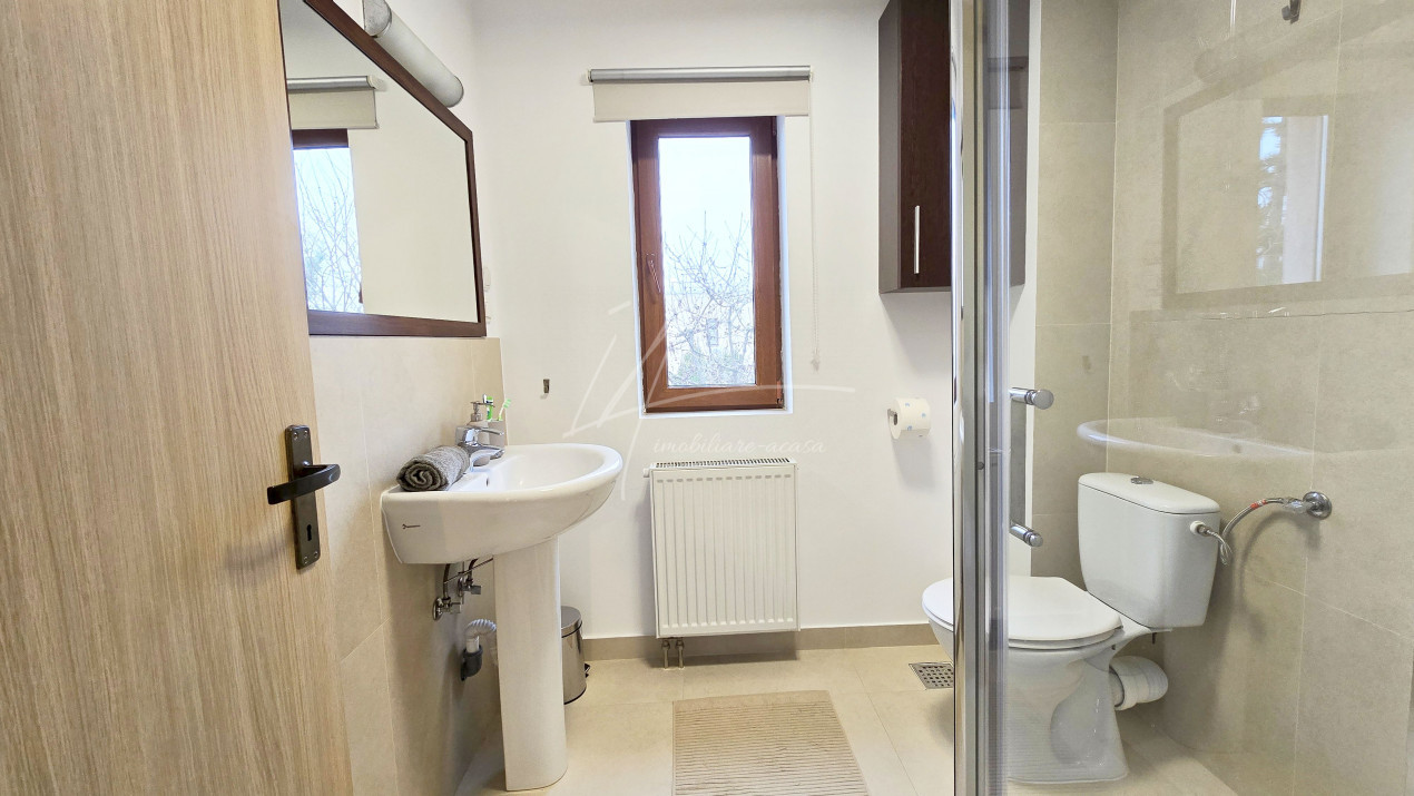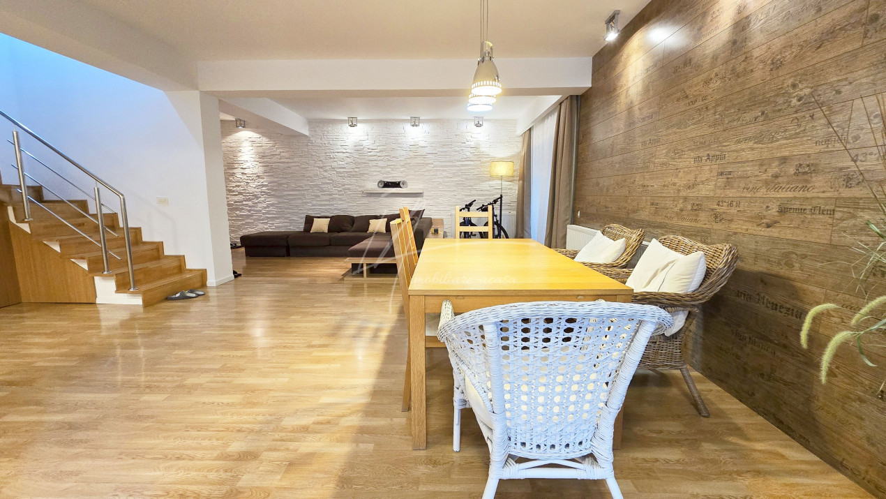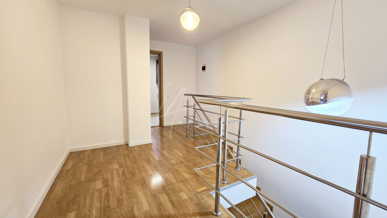 Altfel, casa, pe cat de generoasa si confortabila, este pe atat de intima, atat cat isi doreste orice familie doritoare de liniste si confort sporit. Caci, in completarea livingului imens cu bucatarie deschisa si echipata complet, a dinning-ului si grupului sanitar de la parter, se regasesc la etaj doua dormitoare individuale, o baie si un dormitor matrimonial cu baie proprie, toate in aceeasi nota reconfortanta.