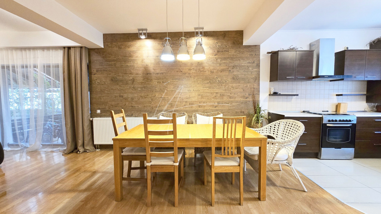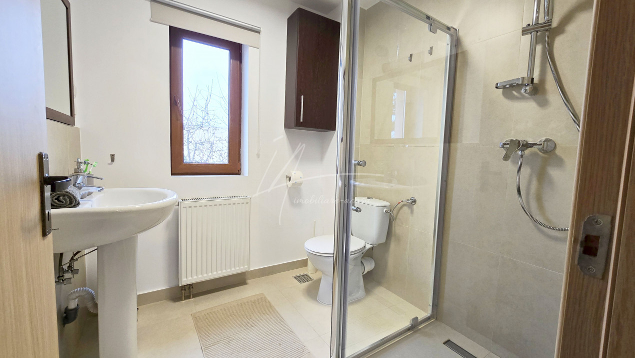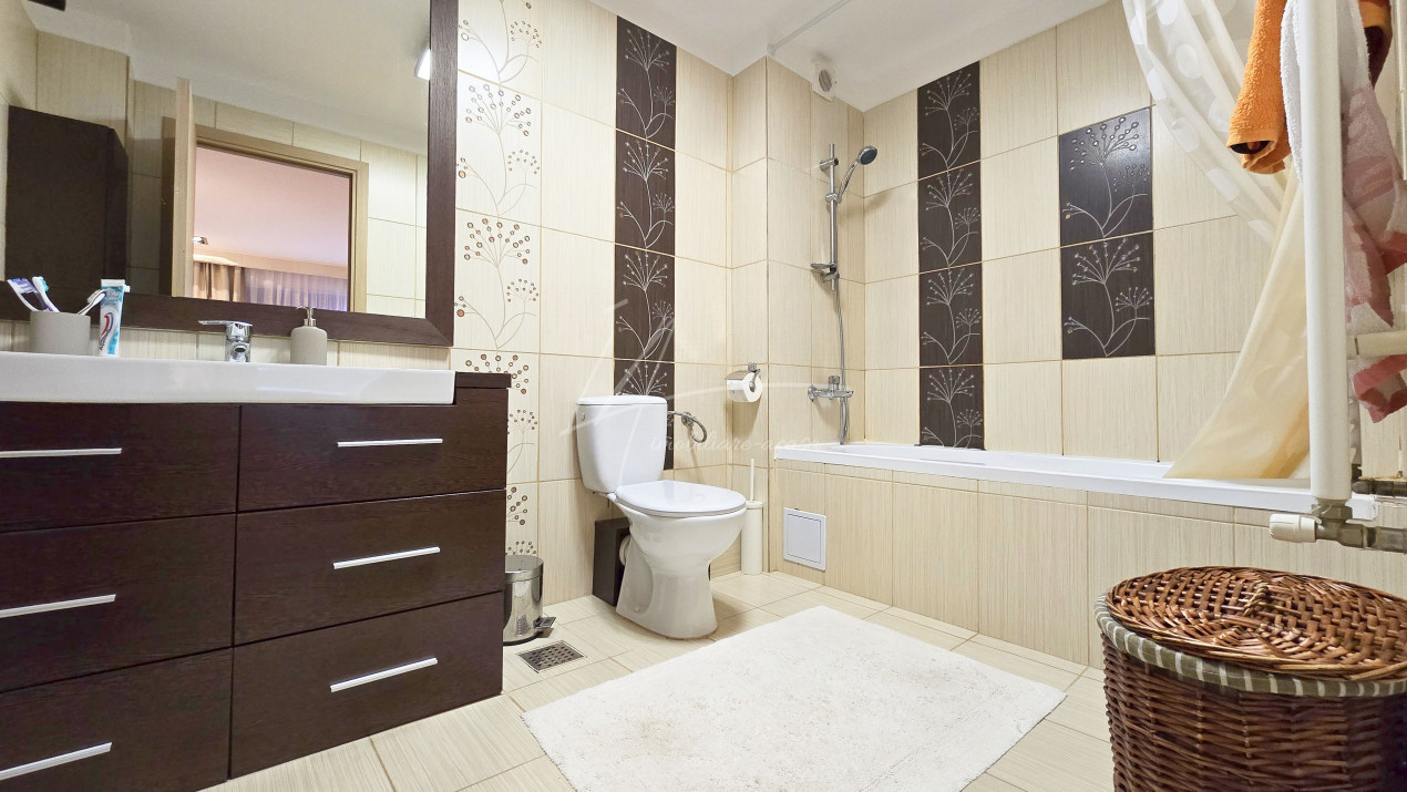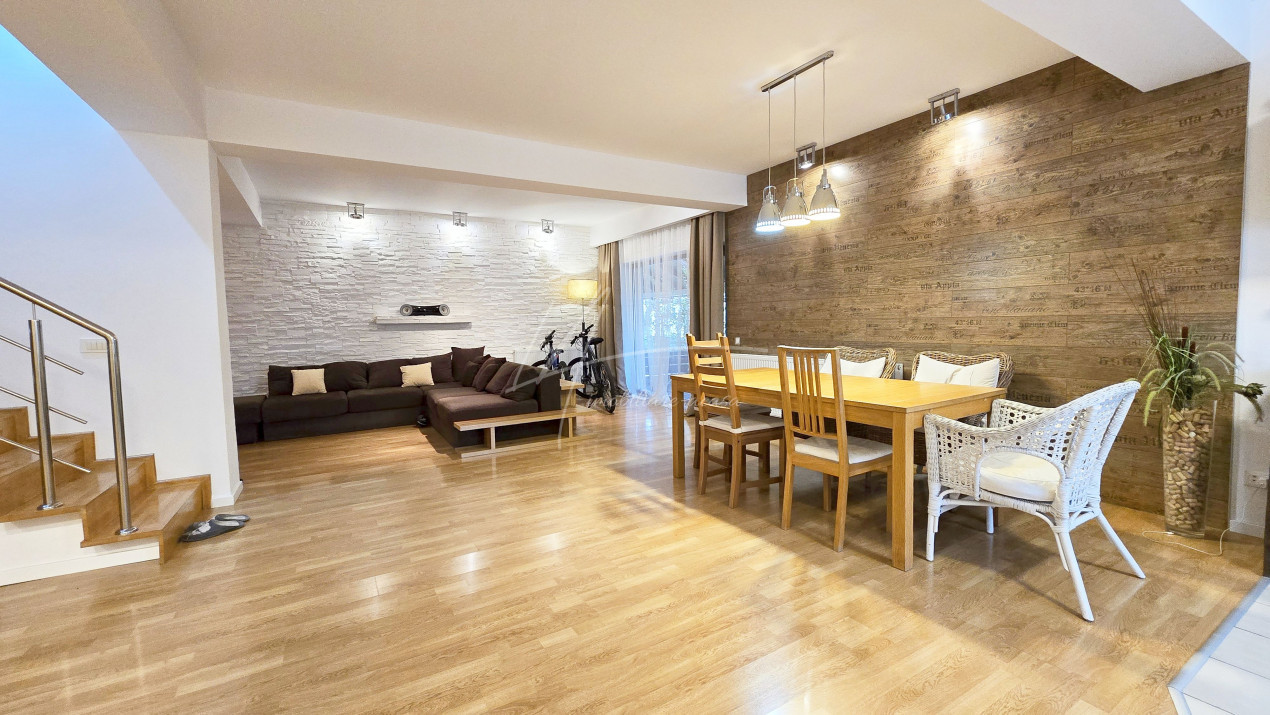 Altfel, casa, pe cat de generoasa si confortabila, este pe atat de intima, atat cat isi doreste orice familie doritoare de liniste si confort sporit. Caci, in completarea livingului imens cu bucatarie deschisa si echipata complet, a dinning-ului si grupului sanitar de la parter, se regasesc la etaj doua dormitoare individuale, o baie si un dormitor matrimonial cu baie proprie, toate in aceeasi nota reconfortanta.