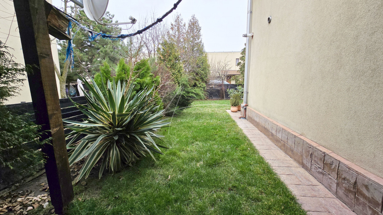In plus, curtea este o adevarata oaza de relaxare, atat prin existenta terasei acoperite laterale cu acces in si din living, a gratarului amplasat in partea dinspre strada curata si linistita. Si totul se completeaza cu atmosfera tihnita a cartierului locuit de oameni de calitate. Si totul la doar 30 de minute de Piata Unirii.