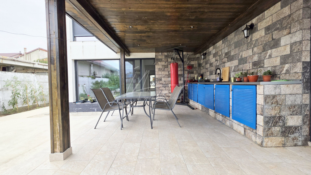 - terasa generoasa si foisor iluminat, prevazut cu gratar integral din samota, plita și afumatoare