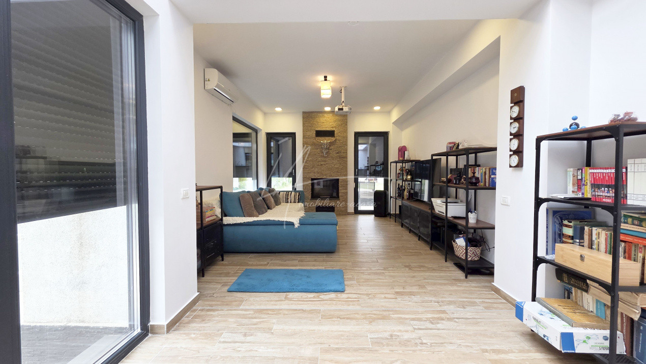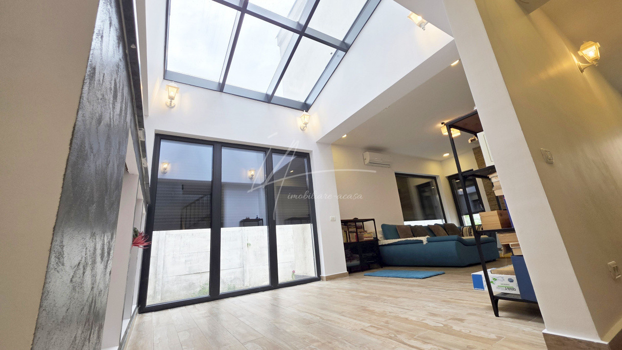 Tamplaria premium Salamander AD 92 BlueEvolution, geam tripan 4S+CLAR+Low-E, completata de usi glisante din aluminiu Cortizo și luminatoare Aluprof cu geam securizat/dublu duplex si Argon, asigura lumina naturala abundenta si izolare fonica si termica excelenta. Rulourile electrice anti-efractie Aluprof se pot închide simultan din telecomanda la plecarea din casa.