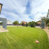 Grădina este complet amenajată, cu gazon rulou, sistem automat de irigații și peisagistică atent realizată, incluzând plante, piatră decorativă și pomi. Vila beneficiază și de o terasă exterioară amenajată, videointerfon, sistem de alarmă și supraveghere, precum și un dedurizator combinat cu osmoză inversă pentru apă potabilă.
