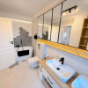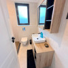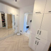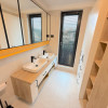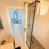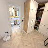 Baia matrimonială este dotată cu o cadă freestanding, adăugând un plus de eleganță și rafinament.