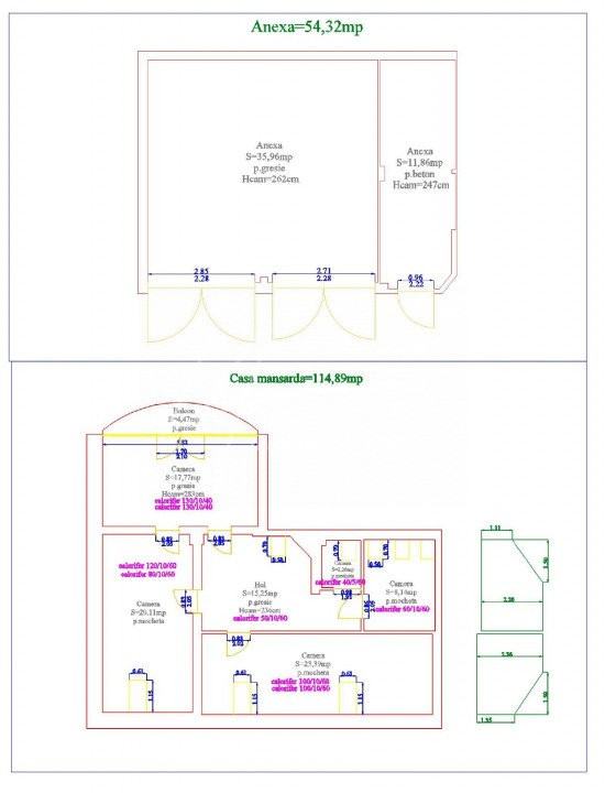 • Anexe (54 mp) – 2 garaje + magazie