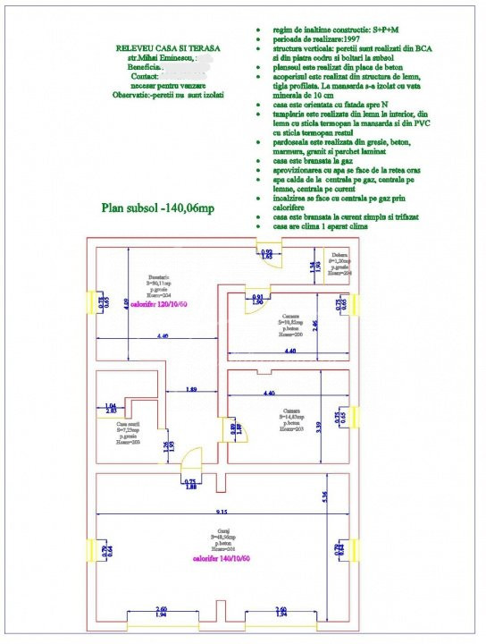-SUBSOL in suprafata de 140 mp, compus din 2 garaje, 2 camari, bucatarie, debara si casa scarii;