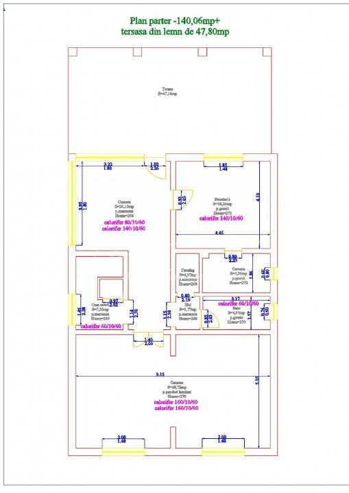 -PARTER in suprafata de 140 mp, compus din sufragerie, hol (living), camara, bucatarie, dresing, baie cu dus, casa scarii si terasa in suprafata de 48mp;