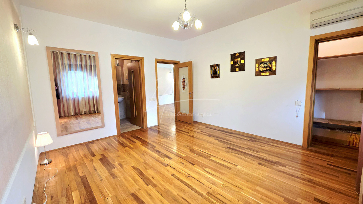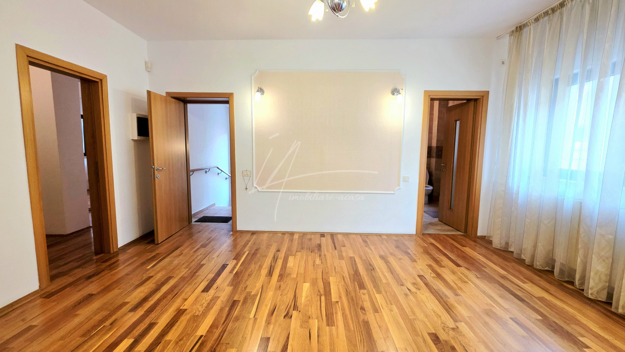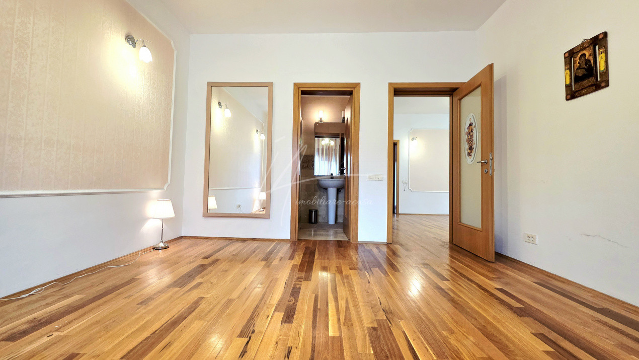 - Parter: living elegant cu acces la grup sanitar, dormitor matrimonial cu baie proprie si birou separat precum si o bucatarie complet mobilata si utilata – perfecta pentru pentru zona de protocol;