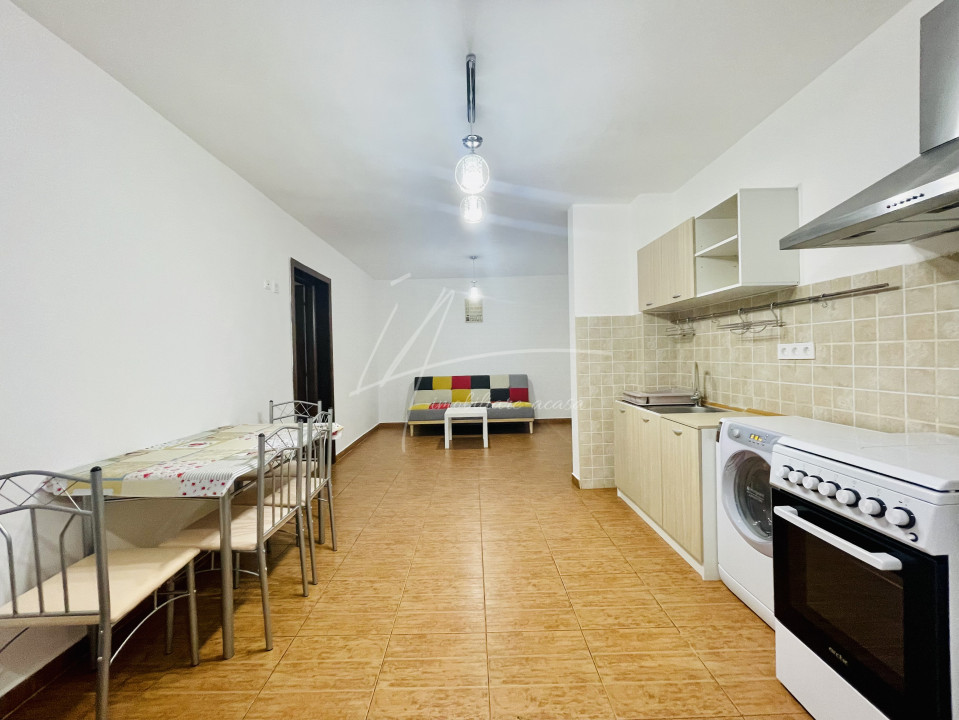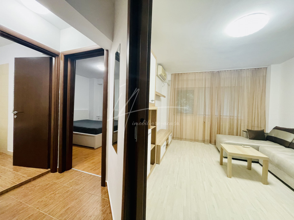 Iti prezint spre inchiriere aceasta locuinta armonioasa de 2 camere ce a fost renovata in anul 2022 si proaspat igienizata. Suprafata desfasurata de 55 mp intr-o compartaimentare semidecomandata, cu bucatarie imensa, living, dormitor si baie, toate intr-o armonie cromatică in nunte de maro, ajuta la formarea unei locuinte ideale in aceasta zona.