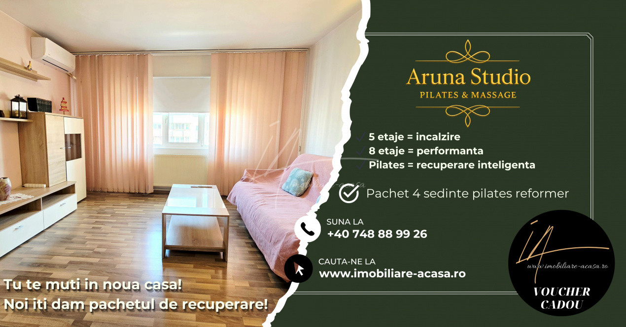 Da-ti sansa cumpararii unui apartament frumos, intr-o zona apreciata a Capitalei si in ziua tranzactiei iti oferim, la alegere un voucher, la alegere, la Aruna Studio - Pilates & Massage, langa Cismigiu: