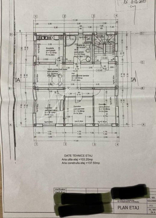 -MANSARDA in suprafata de 139 mp, compuasa din 4 camere, hol, doua bai si casa scarii. Casa scarii ofera accesul la etajul I si la mansarda.